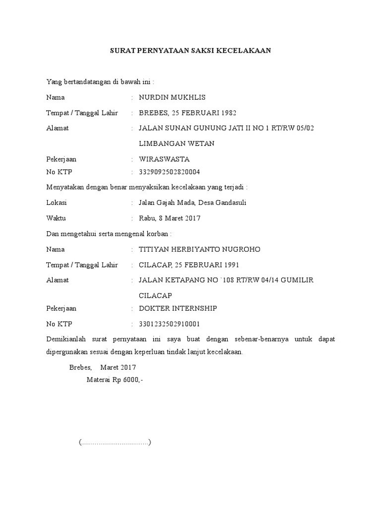 Pada umumnya, surat ini dibuat sebagai persyaratan melamar pekerjaan, mengurus pernikahan, pengajuan beasiswa, urusan kampus, . Ktp 2 orang saksi dan difotocopy; 16 contoh surat pernyataan untuk berbagai keperluan / contoh surat lamaran kerja umum yang baik . Surat pengantar kepala lingkungan/rt/rw setempat. Dalam hal ini pembuatan surat pernyataan diberikan untuk melancarkan urusan pekerjaan, karena adanya surat pernyataan akan menjadikan .